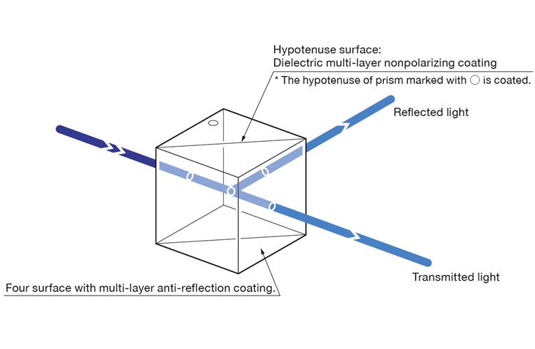 立方分光鏡,在直角棱鏡的斜面鍍一層膜,再膠合一個同樣的直角棱鏡,組成立方分光棱鏡??杀苊馄桨宸止忡R的像散,鍍膜沒有直接暴露,不易損壞和腐蝕。與平板分光鏡相比,分光棱鏡的反射及透射光光程是相等的。在透光時,分光棱鏡沒有光線偏移造成的影響,所以不會存在光束平移,鬼像以及干涉的困擾。用于分光及成像。45°角入射時無需長時間校準。