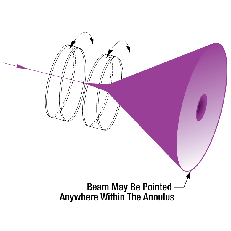 楔形棱鏡可單獨(dú)用于操控激光束,也可配合另一個(gè)楔形棱鏡使用。