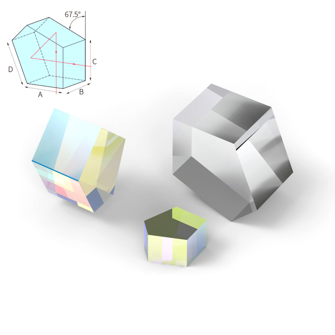 五角棱鏡使入射光束或圖像偏轉(zhuǎn)90°,且不會生成倒像或反像。此外,90°的光束偏轉(zhuǎn)不要求棱鏡與入射光束或圖像精確對準(zhǔn)。