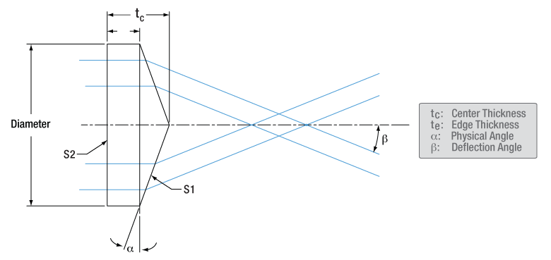 錐形透鏡折射光時(shí)遵循斯涅爾定律??梢杂脕?lái)測(cè)量偏轉(zhuǎn)角: